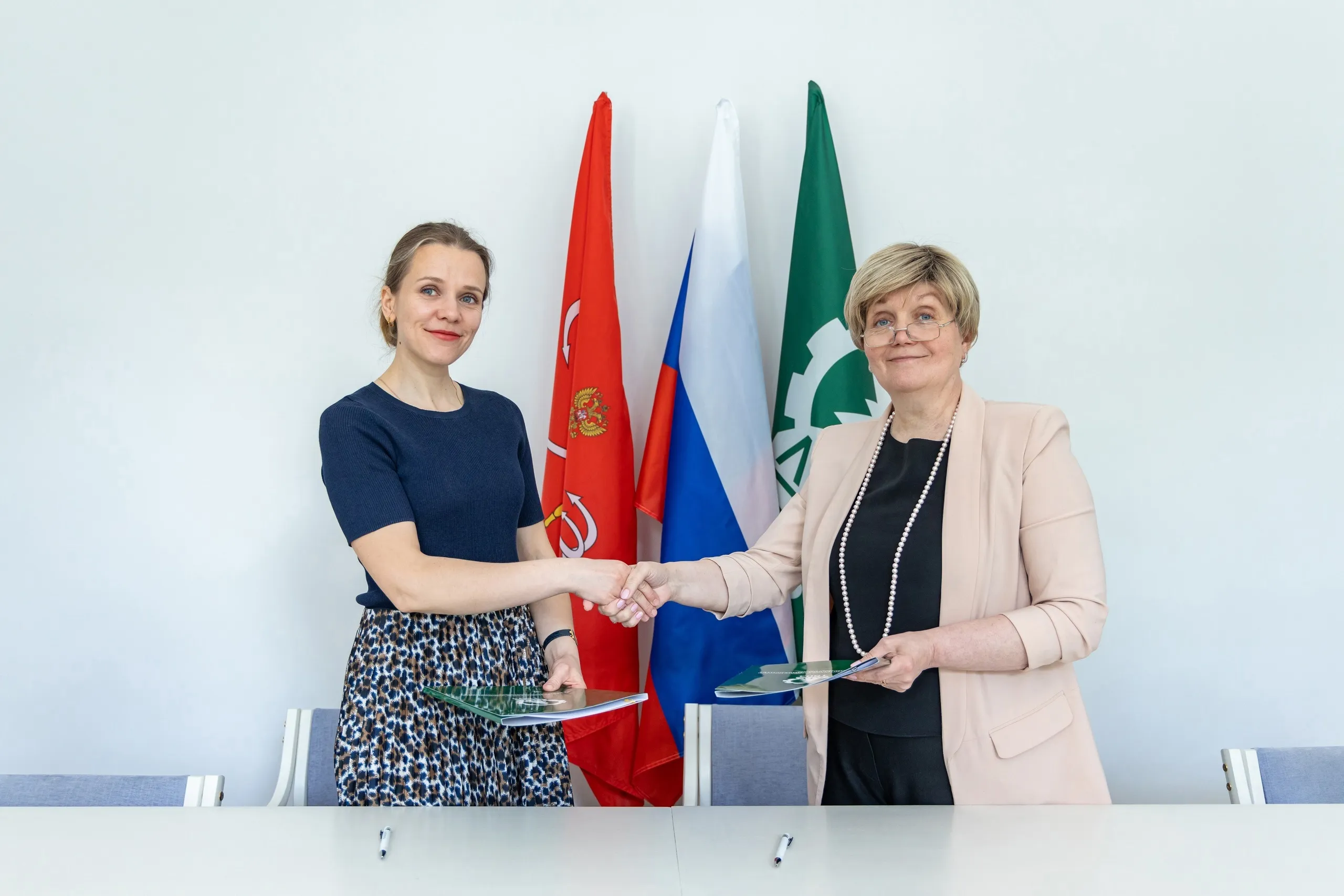 Санкт-Петербург, 28 мая 2025 года Научно-исследовательский институт устойчивого развития среды (НИИУРС) и Санкт-Петербургский государственный лесотехнический университет им. С. М. Кирова (СПбГЛТУ) заключили соглашение о долгосрочном сотрудничестве. Документ подписали директор НИИУРС Вера Сергеевна Бурцева и ректор СПбГЛТУ Ирина Альбертовна Мельничук.