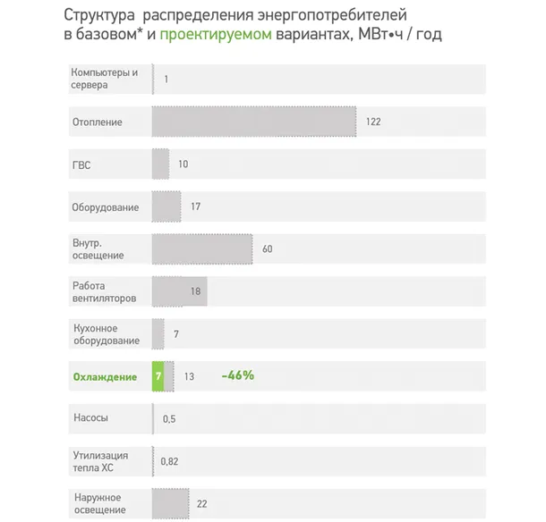 Результат: снижение затрат на охлаждение на 46%.