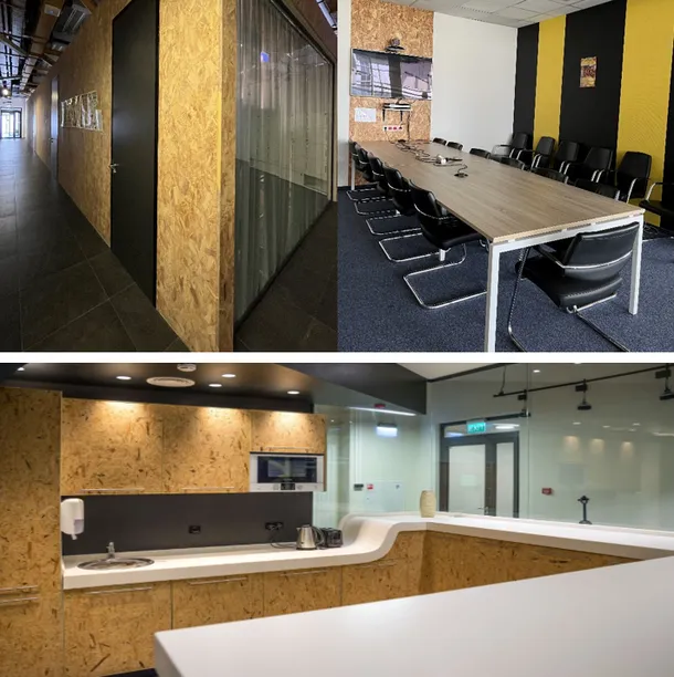 Дизайнеры интерьеров со всей ответственностью подошли к своей задаче. Забота о природе проявляется в выборе материалов – в отделке помещений были использованы материалы со вторичным сырьем, а именно ОСП-плиты. Материалы выбирались с низкими выбросами ЛОС. Такая отделка отлично вписалась в общую концепцию.