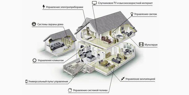 В каждом из таунхаусов возможна установка интеллектуальной системы «Умный дом» (это система автоматизации домашних устройств, которые выполняют свои действия и могут решать определенные задачи без участия человека).