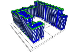 Для оценки энергоэффективности объекта была выполнена его трёхмерная энергетическая модель на основе проектной документации. Объёмно-планировочные решения объекта были учтены с помощью 721 элемента модели. Определение энергетической эффективности выполняется путём сравнения энергопотребления Проектируемого здания с энергопотреблением Базового здания, выполненного согласно нормам, существовавшим на 2007 год.