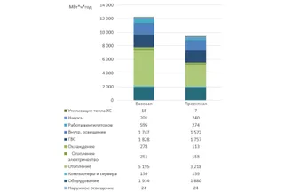 Результаты энергомоделирования позволили точно определить эффективность объекта: 23% по сравнению с его Базовой моделью, построенной по методике GREEN ZOOM. Объект получил 6 баллов за энергоэффективность. Наибольшая экономия на отоплении и вентиляции достигнута благодаря улучшенным тепплотехническим характеристикам ограждающих конструкций, приточно-вытяжным вентиляционным системам с утилизацией теплоты удаляемого воздуха, включению вентсистем автостоянки, ИТП и машинных отделений лифтов по сигналу от датчиков, использованию термостатических клапанов на отопительных приборах, погодозависимому графику подачи теплоносителя в систему отопления.