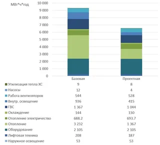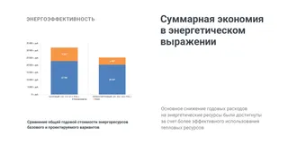 Основная экономия средств на энергетические ресурсы была достигнута благодаря более эффективному использованию тепловых ресурсов. Далее рассмотрим решения, которые помогли достичь такой экономии.