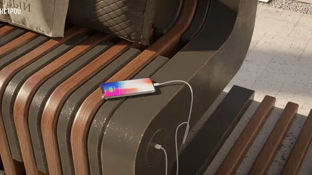 В скамейки в зоне отдыха встроены зарядные устройства, чтобы вы всегда оставались на связи.