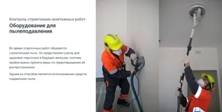 Во время отделочных работ образуется строительная пыль. Он представляет угрозу для здоровья персонала и будущих жильцов, поэтому крайне важно принять меры по предотвращению её распространения. Поверхности стен и потолков были обработаны промышленным пылесосом для удаления пыли.