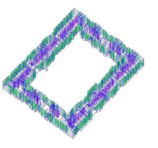 На первом этапе строится геометрия здания: стены, перекрытия, крыша, окна и т. д. Каждый этаж строится с помощью соответствующего поэтажного плана из раздела проекта «Архитектурные решения», поэтому в результате получается точная копия здания.