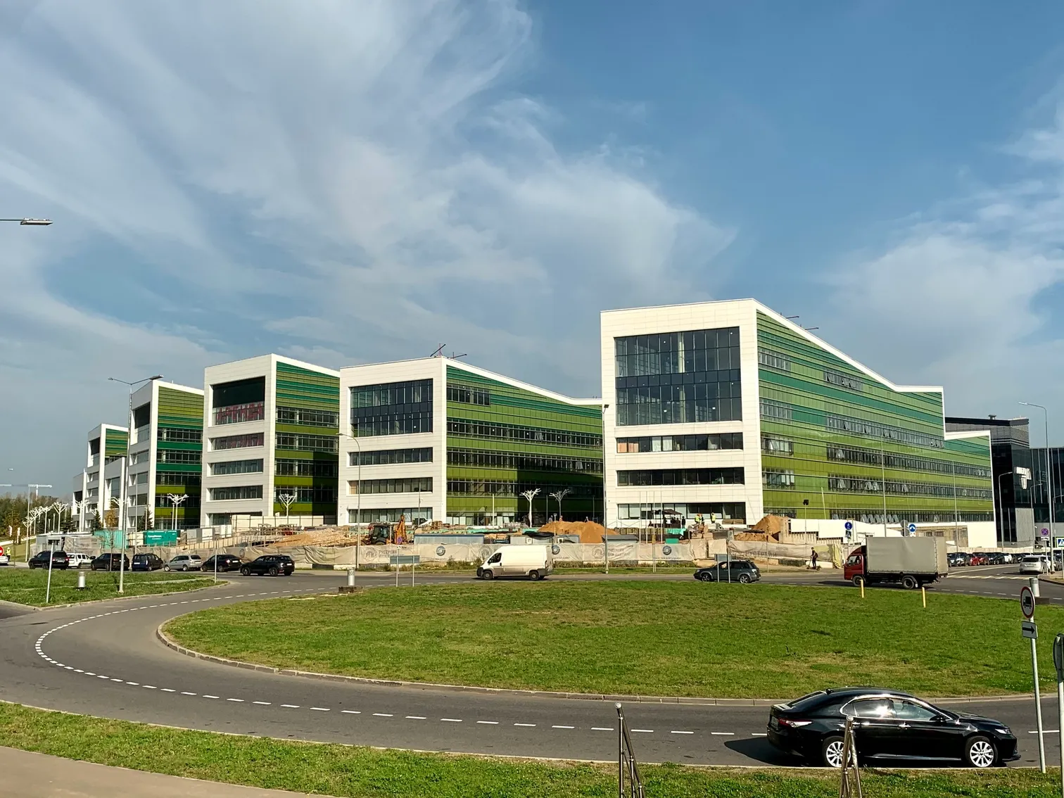 Здание НИОКР Трансмашхолдинг - это современное общественно-деловое здание. Оно объединяет исследовательские и лабораторные площади, сервисные и технические помещения. В его архитектуре отражены новейшие тенденции в области экологического и энергоэффективного строительства. Архитектура и организация пространства Архитектурный облик здания формируют скошенные профили крыш и параллельные блоки зданий, что придает ему современный и технологический вид. Центральным элементом здания является Атриум, вокруг которого организованы все рабочие пространства. Здесь расположены офисные помещения и сервисные зоны, обеспечивающие удобную циркуляцию персонала. Кроме того, в здании есть специализированные помещения для руководства с повышенной степенью безопасности и комфорта. Экологические и энергоэффективные решения Комплекс использует передовые энергоэффективные и экологические решения для уменьшения вреда окружающей среде. Центральный атриум обеспечивает проникновение естественного света внутрь здания, снижая энергопотребление на искусственное освещение. Зеленые насаждения получают необходимую им влагу с помощью системы капельного полива, а дождевые стоки с кровли собираются и очищаются для технических нужд от мытья тротуаров до нужд полива, что помогает уменьшить нагрузку на городскую канализацию. Парковка и транспорт На территории здания предусмотрена двухуровневая парковка на 350 мест, а также специальный VIP-паркинг на 20 мест. На уровне первого этажа организована зона высадки-посадки пассажиров на 10 мест. В паркинге установлены зарядные станции для электромобилей.