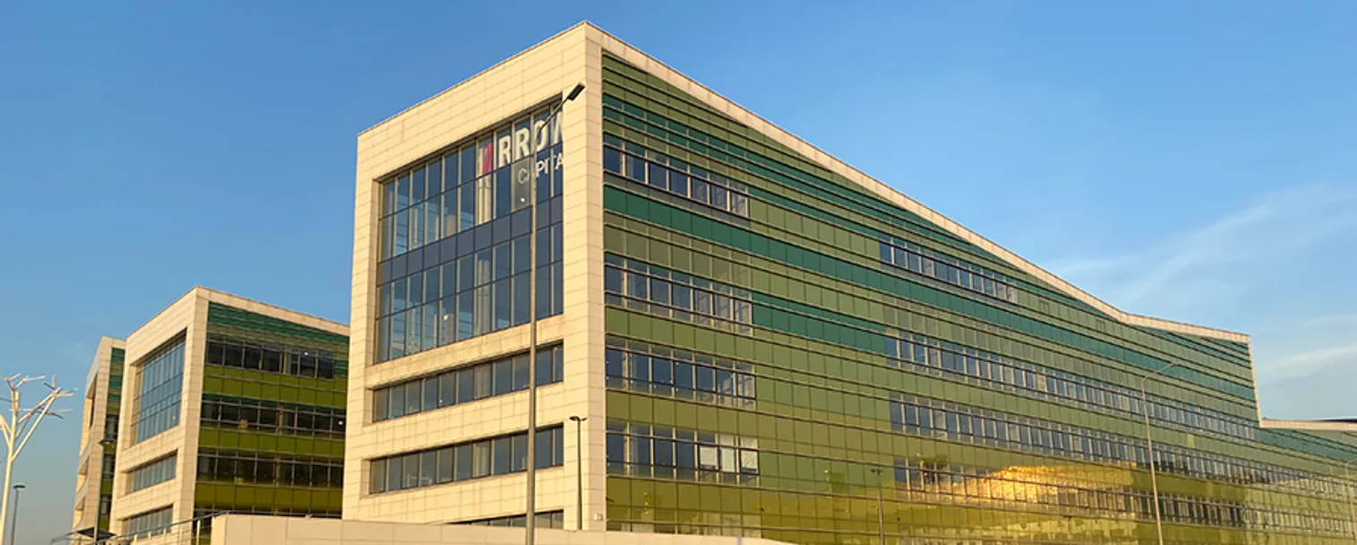 Атриум, богато залитый солнечным светом благодаря зенитному фонарю, не только обеспечивает доступ к рабочим зонам, но и является центром комплекса, вокруг которого располагаются предприятия общественного питания и торговли. Такая конструкция позволяет достичь высокого уровня естественной освещенности, снижая при этом затраты на энергию для искусственного освещения. Атриум проектировался так, чтобы обеспечить максимальное проникновение естественного света внутрь здания, в том числе и в рабочие помещения, непосредственно примыкающие к нему.