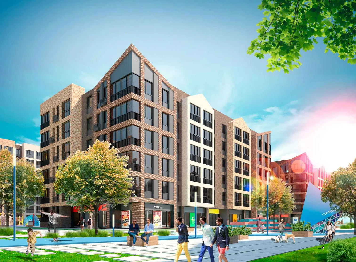 В основе концепции данного проекта заложены принципы устойчивого развития территории, а также формирования активного сообщества, добрососедства и семейных ценностей. Специально для жителей миниполиса организованы различные программы развития малого бизнеса, предоставлены льготы на аренду коммерческих помещений. Помимо этого, на территории предусмотрены пространства для работы и творчества: соседский клуб, коворкинги и творческие мастерские.